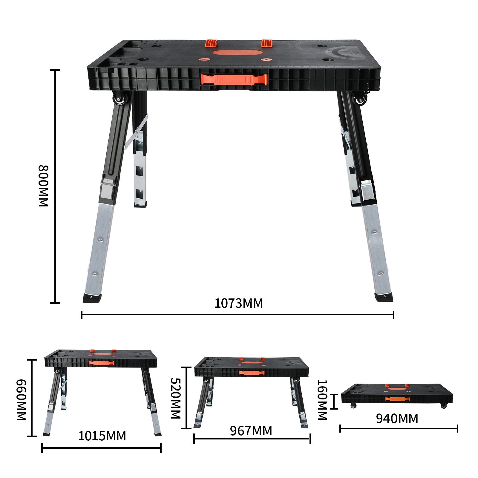 5 modes: workbench, sawhorse, scaffold, car creeper and dolly;